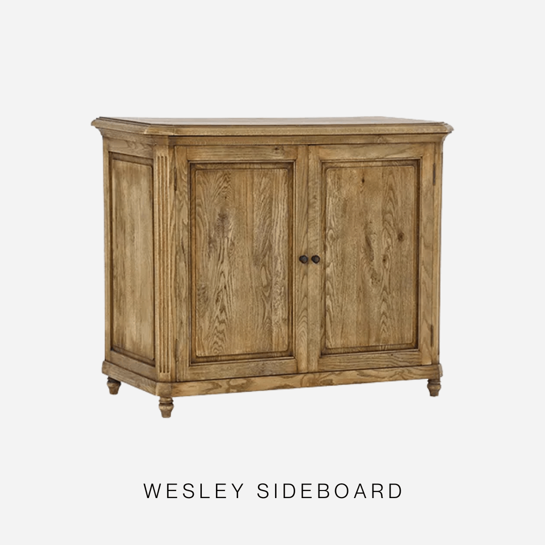 Start with a colour palette of warm or cool neutrals (cream, beige, sage, and grey all work well), and pair with natural wood tones. A little wear and tear goes a long way too - scratches, knots, and nicks add to the authenticity of the look.