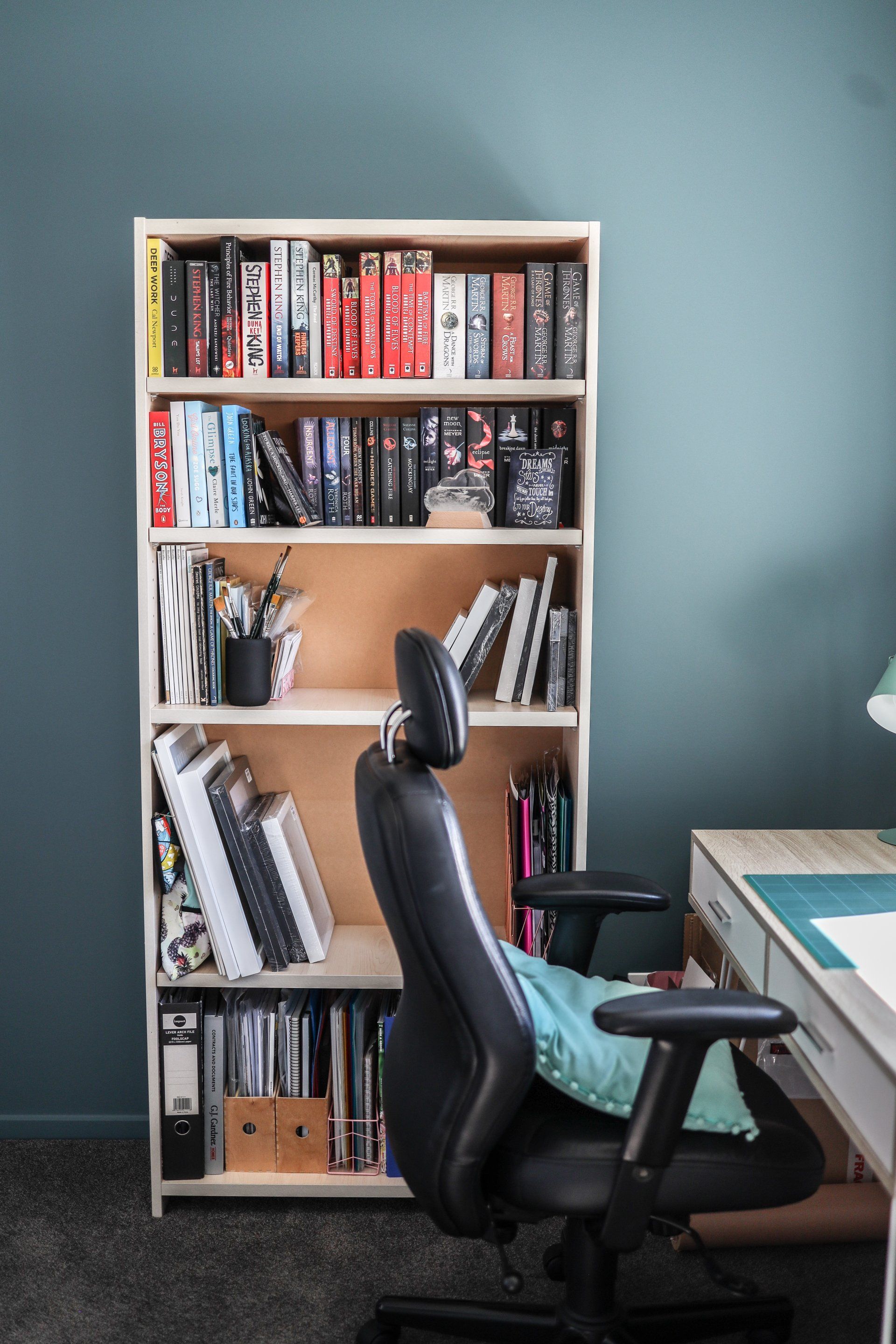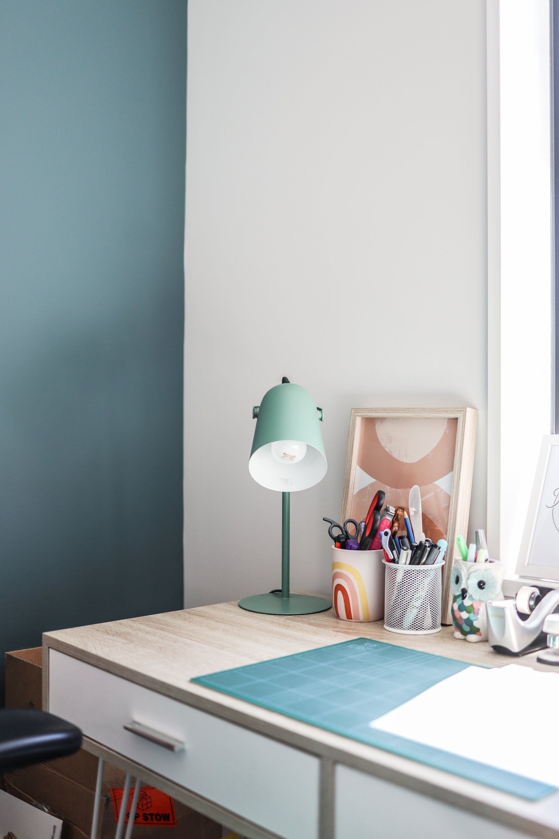 We really love our feature wall colours in the office and our Master bedroom. Both colours tone really nicely together and the green in our bedroom pulls through the green wallpaper from our entrance. Our office has been functioning really well as my art space and Josh's workspace when he works from home. The Honeycomb blind has been working really well and looks sleek and smart. We still have quite a way to go in our bedroom... We are hoping to purchase a new bed soon, alongside some bedside tables (the fact that they don't match at the moment drives me crazy!)