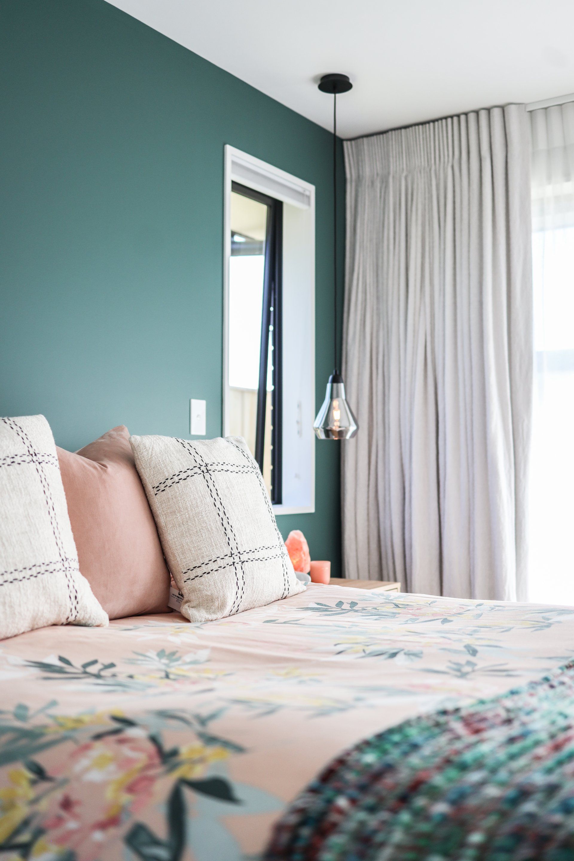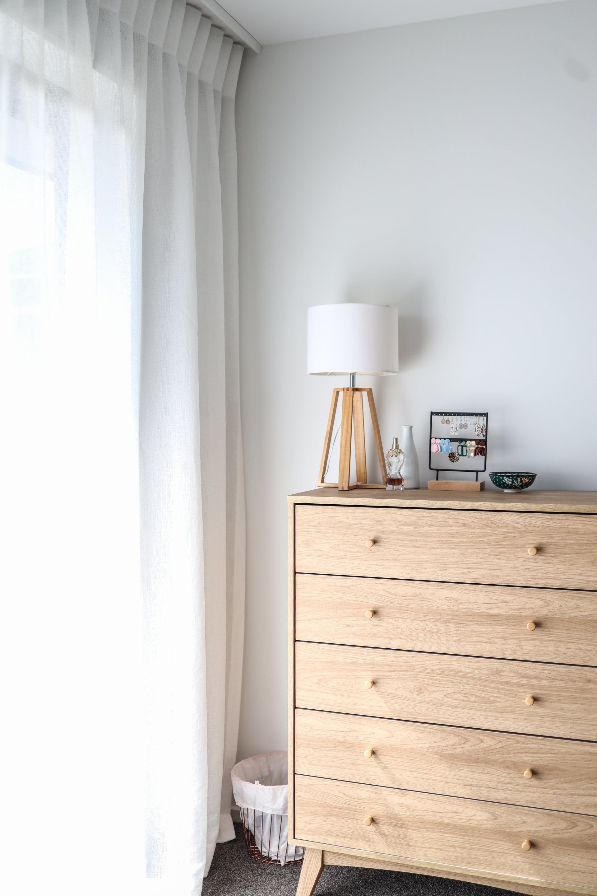We would also like to get a headboard to compliment our green feature wall. Again, our double track curtains work super well in our bedroom. I am obsessed with the stunning Origami fabric and having the sheer curtain is great for privacy from our neighbours.