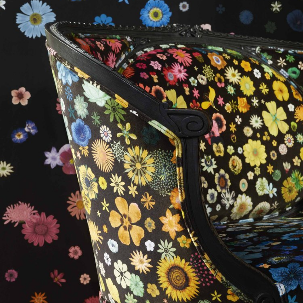 Christian Lacroix is one of my favourite designers for show casing combinations of bold patterns and colours, and he always manages to make his designs look luxurious. This fabric is no exception. The sea of colourful petals dancing amongst the velvet is just gorgeous, and I can imagine it would look wonderful on a cushion or occasional chair. It would definitely add a touch of luxury to any room.