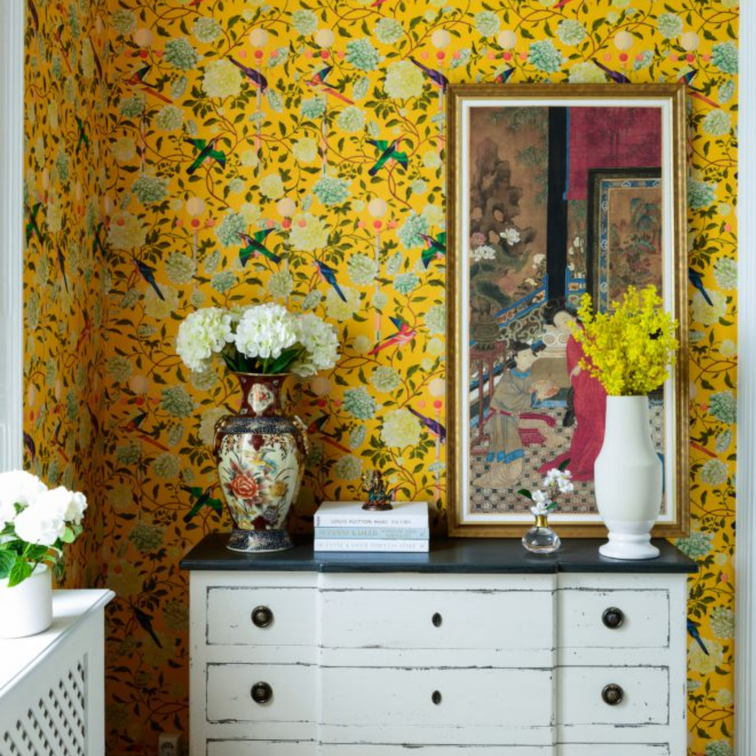 I can't help but be drawn to this gorgeous wallpaper collection featuring pretty blossoms and painterly florals. It's inspired by the historic exuberance of the Asian royal gardens, and I can definitely see why. The colours are absolutely stunning, and the overall design is just so beautiful. I think it would be perfect for a living room or bedroom, and it would definitely add a touch of luxury to any space. I'm definitely crushing on this wallpaper collection!!!
